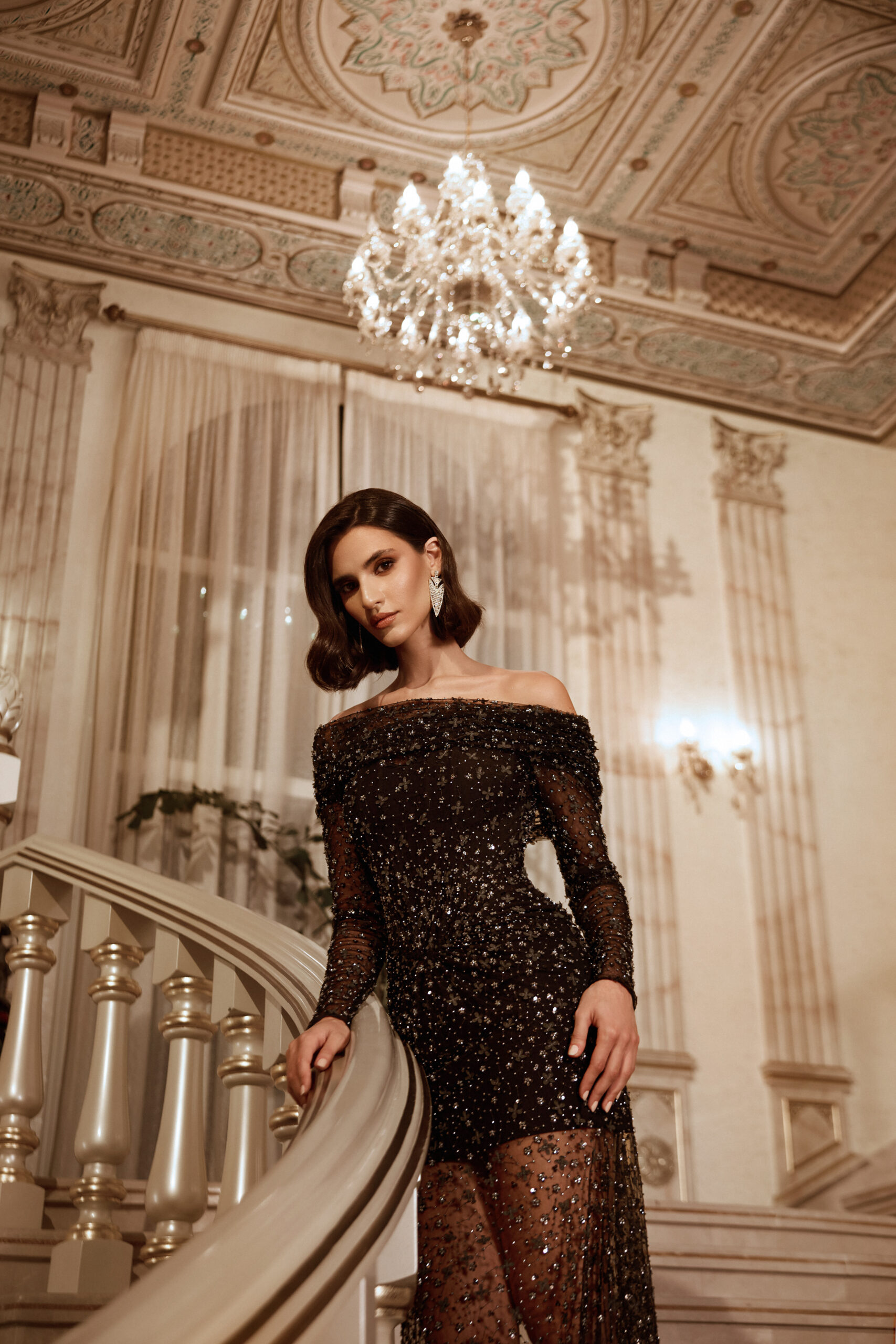 Style: Embellished, Upper Cut: Boat Neckline, Lower Cut: Mermaid Cut, Length: Maxi, Fabric: Embellished, Tulle